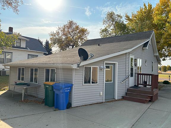 Charming 2 bedroom, 1 bath home located in Tyler, Minnesota. This home has a large kitchen with a heated tile floor, and a very nice living and dining room. Home has all Andersen casement windows. A large 12X20 recreation room was added on in the early 2000s. The property has a very nice insulated and heated 24X28 garage. An additional 14X22 detached garage is located around the back, with alley access. Both garages have cement floors. Good sized 50X180 lot with large established trees. All cement driveway with an additional 14X22 pad along the back garage for more parking.