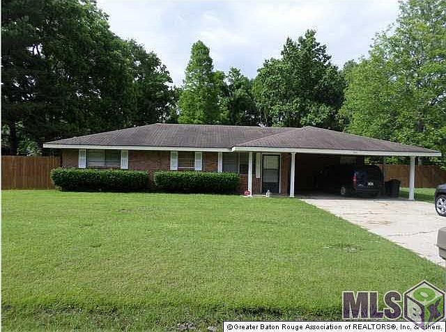 This home DID NOT FLOOD! Located on 3 lots (0.53 acres) in the heart of Gonzales, this 3BR 2BA home has a large privacy fenced backyard with a fire pit, IN-GROUND SMOKER (by the fire pit), storage shed, and above ground pool- pool can be removed at buyer's request. The property has multiple varieties of fruit trees with an inground irrigation system for convenient watering during summer months. The kitchen is spacious with painted cabinets, a new Kenmore gas range, nice bar area and window view of the back yard. The laundry room is walk-in with lots of space for both storage and freezer. The dryer connections can be either gas or electric. The living room, utility, bathrooms, dining, kitchen, and sunroom have tile flooring and the bedrooms all have new carpet. The master bedroom is spacious, with a closet in the bedroom, and the master bath has lots of room with two more walk in closets, jetted tub, large vanity and large double shower. Make your showing appointment today! Qualifies for 100% Rural Development Financing.