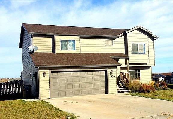 2012 home in Prairie View Estates brought to you by Randy Olivier, The Real Estate Group, 605-430-6246. Well thought floorplan provides an open kitchen, dining and living area on the main level with walk-out deck for entertainment and relaxation. Master suite has nicely sized bedroom, walk-in closet and bathroom. Additional bedroom and bathroom on the main level. Lower level includes a large family room and an additional bedroom and bathroom. 2 car garage is fully finished. Property fully landscaped and mature. Wood privacy fence in the large back yard. High efficiency water heater. Water softener included. Easy access to the Base, Box Elder and Interstate 90.