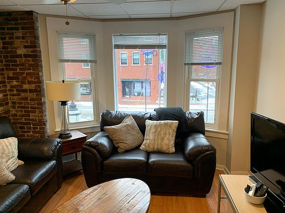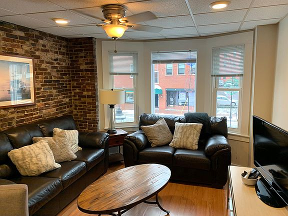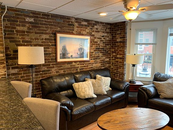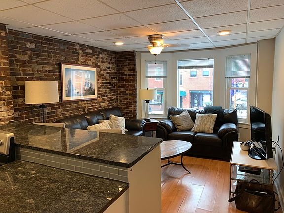 Available for rent is a 2 bedroom apartment located at 330 Fore Street in Portland, Maine. This Old Port apartment is located on the 2nd floor and this walk up unit features exposed brick walls, large living room with bay window overlooking Boothby Square, modern kitchen containing stainless steel refrigerator, microwave, electric stove, garbage disposal, built in kitchen bar with granite counters. The unit contains pergo hardwood flooring through out, ceiling fans, blinds for the windows, modern windows, recessed can lighting fixtures, full bathroom with an electric hot water heater. On street parking. The unit is available Immediately. Tenant pays for electricity which is heat, hot water, lights & plugs. Tenant is also responsible for cable and internet. Landlord pays for water & sewer