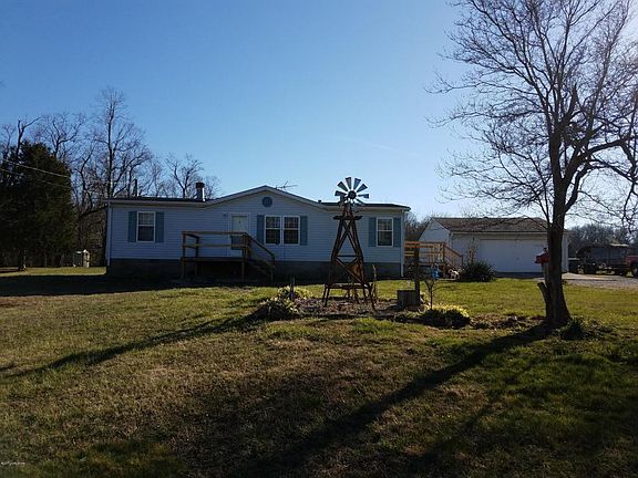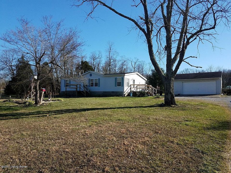 Very nice 3 bedroom 2 bath home with 2 car detached garage in a quiet country setting. House is located in a great location midway between Dixie Highway and Brandenburg. The modular home offers three nice size bedrooms with two full bathrooms, eat-in kitchen and nice size living room with wood burning fireplace. This property also has a fenced-in backyard, nicely landscaped with lots of extras. It also has a built-in tornado shelter in the backyard.