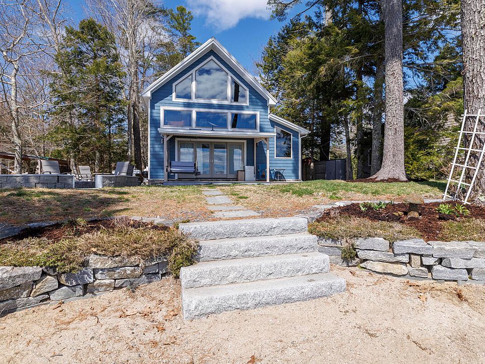 Check out this 3 BR/2 BA, 2016 quality-built 1186 sf Chalet on a 4-foot poured concrete foundation & southeasterly facing views of Schoodic Mtn & sandy beach frontage on this 350-acre spring-fed pond w/ the best clarity in over 40 years. This is a very rare offering on Georges Pond. The home is built to be comfortable for all 4 seasons, very bright and sunny with great passive solar heating. 1st floor is the primary bedroom w/ a large walk-in closet & ensuite bath. On the 2nd floor there are 2 more bedrooms & an office. With Starlink or Spectrum available, working-from-home needs are easily met. The spacious second bathroom has an oversized shower with a spa tub. The very efficient kitchen has stainless appliances and granite counters, open concept living and dining areas, allowing for wonderful family gatherings which will spill out through the double sliding doors onto the 8' x 24' covered deck. Enhancing those gatherings is the oversized fire pit with built-in seating and the 4' x 64' docking system. Outdoor enthusiasts will enjoy the year-round pond access & ability to access miles and miles of ATV trails right from the driveway. Acadia National Park is 25 miles away. Tunk Mountain and all surrounding trails about 15 minutes away. Bonuses: standby generator (whole house less W/D); 8'x12' shed, lifejacket shed (2'x4', lifejackets included), beautiful landscaping, requiring little maintenance, and a patio. Negotiable items are furnishings and fixtures. Included is a one-year home warranty policy.