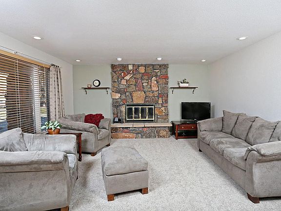 Remarkable find with almost 2700 sqft on one floor! This updated 4 bedroom, 3 bath home offers a large master suite with a beautiful tiled shower, walk-in closet & access to the private patio, 2 bedrooms that share a Jack & Jill bathroom and a large laundry/mud room with tons of cabinetry & storage space. The large custom kitchen has an eat-in dining area, breakfast bar, ample cupboard space & easy access to the formal dining room. Relax in the living room in front of the fireplace or retire to the spacious family room complete with another beautiful stone fireplace, surround sounds & access to the large covered patio with golf course views. The meticulous fenced yard offers beautiful flowers, trees & utilizes water from the golf course. You will also enjoy the extra storage with the over-sized heated 2 car garage, large attached storage shed and RV parking. 50 Year Roof!