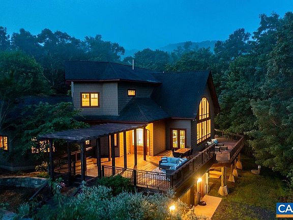 Located in the heart of Nelson County this spectacular 14 acre private estate, Graceland, overlooking Rockfish Valley and Blue Ridge Mountains is everything you are hoping to find. The elegant custom built home was carefully placed at the end of a gradual drive on top of a ridge in an open meadow allowing for ease in access with space to add gardens, orchards, vines, a pool or maybe a pickle ball court! From the moment you enter the magnificent light filled Great Room with soaring 25' ceiling, wall of glass to view, antique heart pine floors, post and beams with wrought iron and floor to ceiling stone fireplace, you will appreciate the fine quality, superb workmanship and exquisite taste that went into making this magnificent home. Entering the gourmet kitchen with stone fireplace, marble counters, custom cabinets and chef appliances you see yourself entertaining friends and family in your home here. Designed for one level living the office with Murphy bed, powder room, laundry and large primary suite flow together. Upstairs are 2 guests, den and bath. Downstairs a rec room, 2 BRs 2 baths and garage. Within minutes to Wintergreen, skiing, golfing, AT, wineries, breweries, and C'ville why wait? You deserve to be here now!