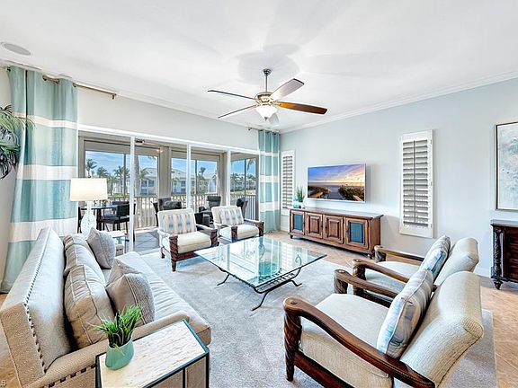 For the epitome of quiet opulence, look no further than this rarely available & remodeled, waterfront coach home in the premier gated community of Sea Grove at The Dunes—only one Sea Grove condo sold within the past year. With almost 3000 sq ft under air, this FURNISHED residence lives like a single-family home but without the upkeep. Located in North Naples, the beach is a casual stroll from your front door. This open-concept home is decked out in a calming coastal color palette that echoes the azure sea glass hue of the Gulf. Impressive features include high-end furnishings, elevator, wine refrigerator, brand new carpet on the stairs & primary suite, spacious guest rooms, plantation shutters, built-in grill on the lanai with a wall of pocketing sliders & 2-car garage. The kitchen offers quartz counters with glass tile backsplash, a breakfast bar with eye-catching glass subway tile wrapping, stainless steel appliances, an island, breakfast nook & gorgeous cabinetry with a generous peppering of glass cabinet doors. Amenities include a 25,000 sq ft clubhouse, resort-style pool, poolside tiki bar, restaurants, fitness center, Har-Tru tennis courts with pro shop & so much more.