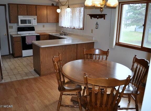 This rambler style home has 2 bedrooms, bath and stackable laundry all on the main level. The spacious living room has a half vault in the ceiling and the kitchen is open to a nice dining room with laminate floors. There is also a 2 stall attached garage that enters into the kitchen. The basement features a family room plus 2 non conforming bed rooms (no egress). If your looking for one level living or have a growing family this home is for you. The home is located on a very nice lot on the edge of town. Appliances included.