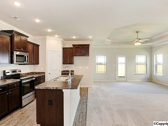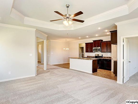 Awesome 4 bedroom+flex 2 bath 1932 sq ft home w/ open concept! Spacious kitchen includes recessed lighting, tile backsplash, Large corner pantry & island. Crown molding throughout main areas. Ceiling fan in great rm & master. 10x16 covered back porch. Conveniently located btw Zierdt Rd & Wall Triana, just mins away from Redstone Arsenal, Boeing, & I-565. River Landing offers resort style living w/ over $1M worth of amenities--pools, clubhouses, fitness center, tennis/basketball/volleyball courts & playground. New Incentive: up to 3% closing cost paid plus no origination fee w/preferred lender.