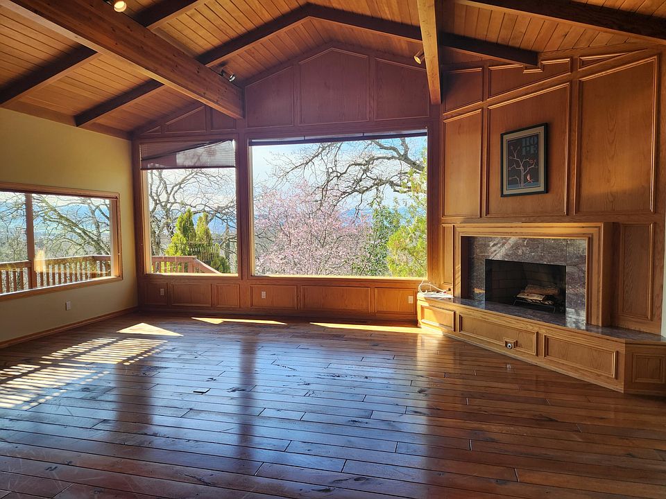 Mid Century marvel in an amazing area of E/M, spectacular city views, enormous property, close to all the amenities! High-quality finishes await you driving up to the Portico & grand entrance. Vaulted entry, spacious dining area & chef's kitchen to the left & main great room straight ahead welcomes you into this lovely home. Large island, tons of cabinet & counter space, stainless appliances, skylights, large bay windows in kitchen area. Large laundry/mud room. Stunning vaulted ceilings, floor to ceiling windows, wood/gas burning fireplace & oak built-ins adorn the great room. North wing offers primary bedroom, 3 guest beds, 2 full baths & another living area & office space. Daylight basement area has 2 bedrooms, full bath and yet another living area. Tons of viewpoints from the decks & patios, above ground pool, wrapped with Trex Deck, optimal outdoor entertainment space. Several varieties of grapes, mature trees & landscape. RV parking, large garage w/shop. A must tour property!