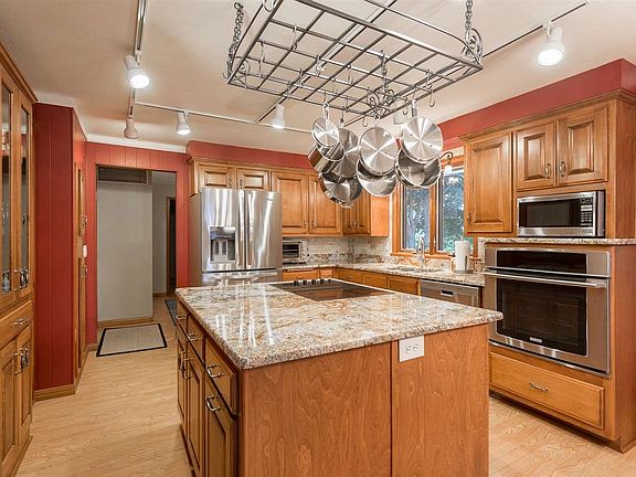 This spacious home has been updated with lots of modern amenities. Open concept main level features large great room with plantation blinds, remodeled kitchen with granite, stone tile back-splash, maple custom cabinets and stainless appliances. There is a hearth/family room adjacent to dining area. Very large bedrooms and the lower bedroom could be used as a den or office. Updated spacious bathrooms and walk in showers. Finished walkout basement and extra deep 3 stall garage. Nicely landscaped with curbing and walking distance to parks