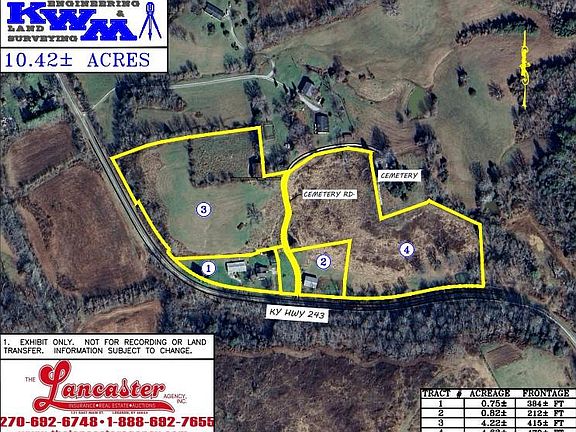 JOIN US FOR AN ON-SITE AUCTION PREVIEW SATURDAY - NOVEMBER 2nd FROM 10:00 A.M. - NOON ***ABSOLUTE AUCTION*** SATURDAY - NOVEMBER 9th, 2024 - 10:30 A.M. ESTATE OF BARBARA & DARRELL LANHAM *HOME - GARAGE - CARPORT - BARN - POND* 10.42 ACRES (+/-) - 4 TRACTS 330 HIGHWAY 243 GRAVEL SWITCH, KY 40328 --- AUCTIONEER'S NOTE: This neat property is nestled in eastern Marion County on 10.42 acres (+/-) in the beautiful Gravel Switch area of Central Kentucky... Close to the Boyle County & Casey County lines...Just a short drive to Danville, Lebanon, Liberty & Lexington! You get the best of both worlds...Great country living featuring gorgeous panoramic views of the surrounding countryside... Close to all the conveniences of several towns! Plus...The neighbors in the back of this property in the Rollertown Cemetery are extremely quiet! *Note: The last time this property was offered on the market was 1996! You don't want to miss this opportunity to purchase your own little slice of paradise... ***AT ABSOLUTE AUCTION ON SATURDAY, NOVEMBER 9th, 2024 AT 10:30 A.M.!***