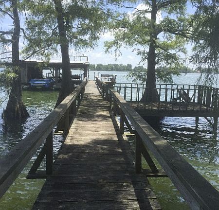 This 2 bedroom 2 bath camp has an open floor plan, large covered porch, washed rock walkway down to a pier that has plenty of room with a swimming deck, nice steps, picnic area, covered sitting area and electric boat lift. The camp sits up high overlooking Lake Bruin and is located close to LakeLife store just off Hwy 65 in a deep water area. If you are looking for a camp on Lake Bruin you really need to see this one. Owners just recently built a nice privacy fence and replaced the shingle roof with a metal one. Give us a call today!