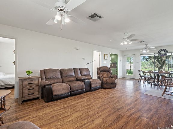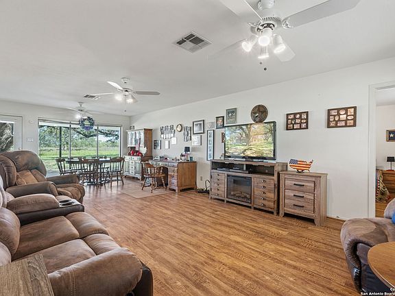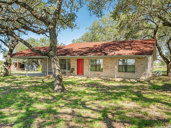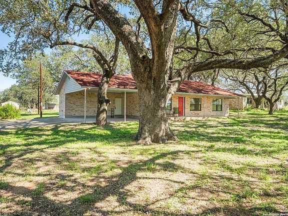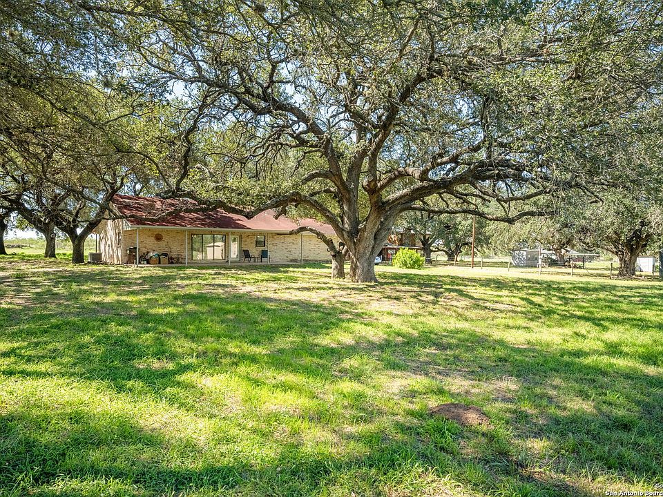 BEAUTIFUL SETTING FOR THIS BRICK HOME ON 3 ACS WITH AWESOME OAK TREES******OPEN FLOORPLAN WITH SPLIT BEDROOMS AND 2 BATHROOMS****LARGE LIVING AREA WHICH INCLUDES DINING****KITCHEN HAS APPLIANCES***UTILITY ROOM AS YOU ENTER HOME FROM CARPORT****LARGE STORE ROOM AREA WHICH COULD BE MADE INTO ANOTHER BEDROOM IF NEED BE****FRONT AND BACK COVERED PATIO AREAS*****SO VERY PEACEFUL*******THERE IS A STORAGE UNIT WITH RV HOOK UP ****2 CAR CARPORT ATTACHED*******WHAT A GREAT LOCATION TO CALL HOME```````````
