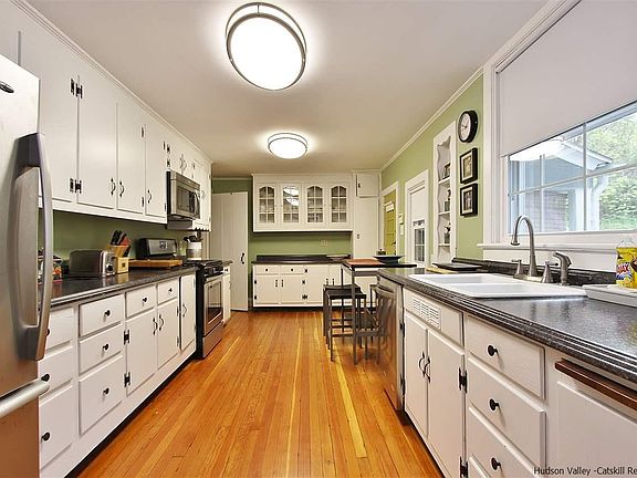 Fabulous 4 bedroom home within walking distance to Uptown Kingston and the bus station. Move right in and enjoy, the artistic seller got it right from the attached garage, all oak/pine flooring, full basement with a slate tile floor to the cozy sneak-- away attic. This home is solid and a great place for a buyer looking for quality and warm traditional accents. The charming period details of this Cape Cod style home remain in tact including beautiful working fireplace and real beamed ceilings offering delightful character. Oak floors shimmer throughout both floors and the rooms are just flooded with natural light. The kitchen has been nicely updated with new appliances, there is a great blue-stone patio perfect for afternoon summers dinners or morning coffee. Owner has just installed brand new double pane windows throughout offering light filled rooms and higher efficiency. A brand new Central Hudson natural gas line was run to the STATE OF THE ART 4 zone heating system... The mature grounds offer flowering trees and perennials giving a park like feel. The home is set high off the road with a circular driveway enabling easy access and plenty of parking. The full basement has a shower, finished tile flooring and easily made into additional living space. This home may also be suitable with an in-home business due to the proximity to Uptown Kingston and offering plenty of parking (business zoning approval would be required).