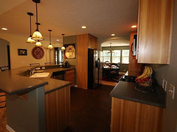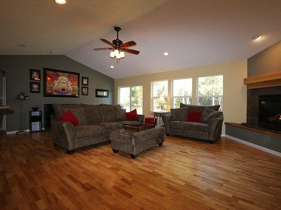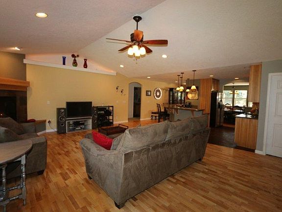 Newer home on treed 1 acre lot. This 4 bedroom 2 1/2 bath single level home is beautifully landscaped, and has a sprinkler system, in a great neighborhood. It has a covered front porch and beautiful open back deck for you to enjoy. With an open concept kitchen and living room plan and vaulted ceilings it is great for entertaining your guest. The master bedroom and bath are spacious, the master bath includes a large jetted tub. The floor plan separates the other 3 bedrooms from the master bedroom. The kitchen features custom hickory cabinets with large breakfast bar.
