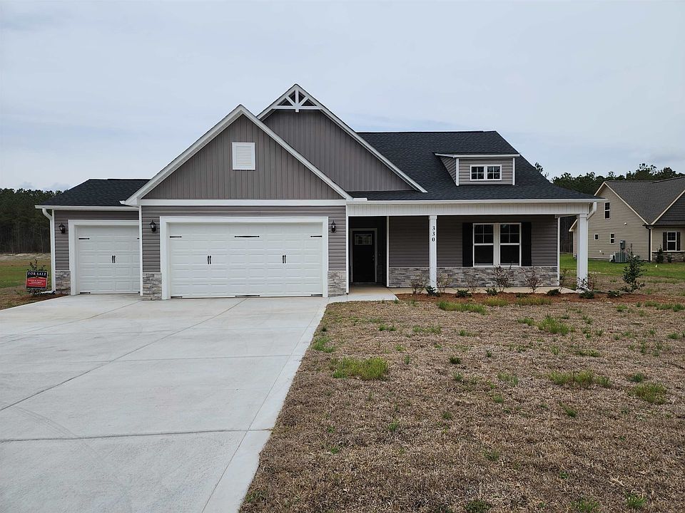 Ready to Move In!! This amazing 4 bedroom 1.5 story home with a 3 car garage is a wonderful plan to fit so many needs!! 3 bedrooms are downstairs including a large owners suite with large walk in closet and owners bathroom with double vanities and walk in shower! There are 2 additional bedrooms on the main floor and a full bath with double vanity. The washer and dryer room is located off the 3 car garage close to the bedrooms. There is an additional large bedroom and full bath upstairs perfect for guests! The downstairs is open from the kitchen to the family room. There are lots of cabinets, a granite kitchen island, SS appliances, and walk in pantry! The family room has a cozy electric fireplace and looks out onto the back porch. This large lot is perfect in this country setting yet convenient to Fayetteville, Sanford, Lillington, Fuquay Varina and surrounding areas!!