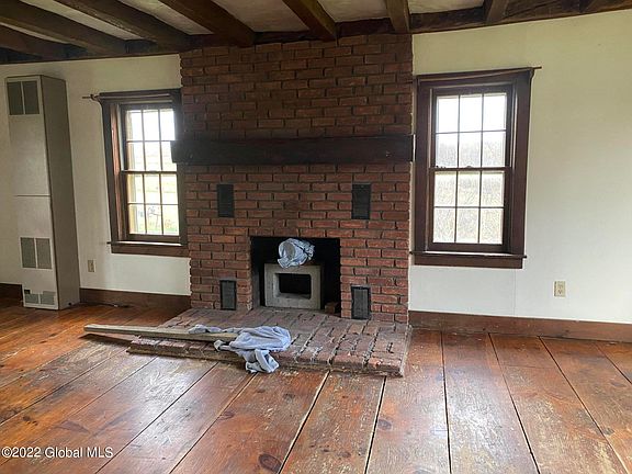 Affordable country home with wonderful views, exposed beams, 2 fireplaces and wide plank pine floors. This was a beautiful home before it was rented...Attached 2 car garage and 2 barns. Needs TLC and won't qualify for FHA or USDA because of condition. Ideal for first time buyer, handy man or investor. Crawl space access hatch is in the closet in the kitchen.