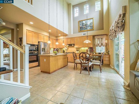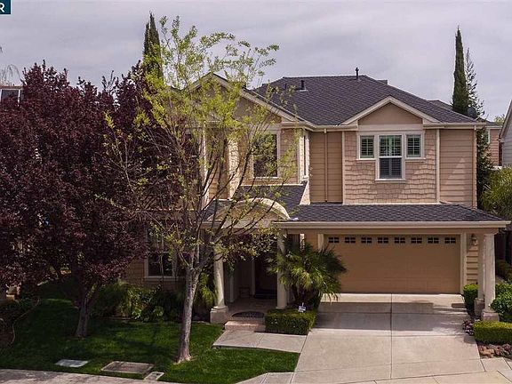 Nestled among rolling hills, this magnificent updated single family residence is situated in a cul-de-sac in sought after Windemere. Open layout, full of natural lighting. Soar ceiling in family room and kitchen area. Upgraded tile flooring and designer custom window coverings in living room and family room. New wagon wheel chandilers. Ideal floorplan, one bedroom and a full bath downstairs. Upgraded newer carpet upstairs. Spacious master bedroom with city view. Built in desk in upstair hallway. Professional landscaping, a designer City Park theme with mature trees in front & backyard.Slate tiled patio covered by a retractable remote-controlled SunSetter awning and extended by decorative stamped concrete finishing in a lawn and retainer wall featuring a water fountain, natural gas fire pit surrounded by semi-circular sitting area, and natural gas BBQ hook up. Walking distance to all 3 Top rated Windemere schools,Walgreen and DVC San Ramon . Minutes drive to freeway and BART .No HOA. A must see!