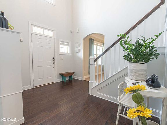 Don't let this one slip away! This 4 Bed 2.5 Bath is located in the Highly desirable waterfront neighborhood of Queens Harbor in Swansboro. Open concept with ideal layout. two story foyer entry. Huge family room with upgraded stone surround and gas fireplace. Beautiful updated tile flooring in the sunroom and large open dining area with coffered ceilings. The open kitchen boasts updated cabinets and fixtures, granite countertops, and tile backsplash. Also downstairs is a study which could be used for another living area, bonus room or office. Laundry located upstairs for your convenience. Immaculate master Suite with sitting area as well as a huge closet and finished storage area. Fresh landscaping, deck, all on .62 acres which backs up to woods for added privacy. All bedrooms are great size and offer plenty of storage. Neighborhood has water access with Day Dock, picnic area. Short drive to Camp Lejeune, and less than 15 mins to the beaches of Emerald Isle.
