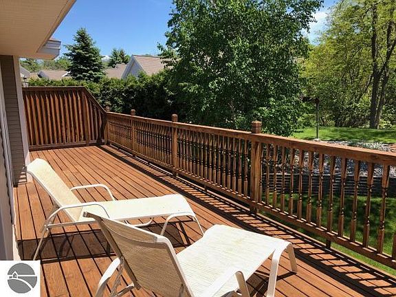 Beautiful setting and a beautiful condo. Everything you're looking for: 3 BR, 3 BA, 2-car attached garage and move-in ready. You'll love the master suite and laundry room on the main floor, the extra bedroom and bathroom on the main floor for guests, and the walk-out lower level set up with another bedroom, bathroom, finished family room, more beds, an office and a craft/storage room too. Clean, clean, clean. And the private deck overlooks a quiet, wooded setting where the deer love to play. Southern exposure there so enjoy the sunshine in the lounge chair or sit under the covered section for shade. $350 association fees cover lawn and snow removal so you can enjoy your free time to stroll to the beach or the Riverwalk, just steps away!