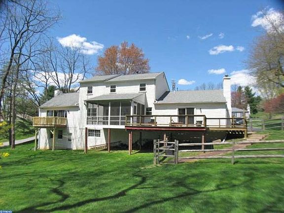 A Wonderful place to call home in the Scots Grove Development... This well-maintained 5 bedroom, 3.1 bath home is not your typical 2 story colonial... A 2 story addition is just one highlight of this unique layout, with its (22 x 25') Great room w/Lodge-type feel, impressive stone fireplace and cathedral ceiling makes this the perfect spot for your next gathering... Below, of equal dimensions, is a wonderful hobby/art studio w/full spectrum lighting and walkout... (2) Master bedrooms in this property - 1st Floor master w/brick fireplace, steam shower, and slider opens to deck and screened porch, overlooking your private parcel... Decorative yet functional coal stove in living room (center of house)adds another heating possibility to this property for efficiency & cost savings... Updated windows, Newer kitchen cabinets, (2) kitchen sinks/disposals, Hard Wood Flooring throughout most of the home in excellent shape... and What a Wonderful Setting! Peace and Serenity Plus is the feeling, sitting in the trees, overlooking your wooded acre from the large 16 x 22' Deck or the 12 x 16' screened porch... Plenty of additional room in the unfinished lower level covering the original house footprint (max. storage area & laundry can be found in this space) ...This property is just waiting for you to personalize it... Great neighborhood to walk/bike... Mins. away for shopping, major routes, recreation, plus all the area activities found in West Chester... Who could ask for more? ...So bring an offer... Immediate possession...