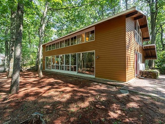 Custom built Techbuilt, designed by noted modernist pioneer, Carl Koch. This midcentury-modern gem is an unspoiled diamond in the not-so-rough, newly painted, with refinished floors, ready for you to make it your own. Located on five acres of wooded land just minutes off of I95, you will feel like you are on vacation every time you come home, mix a cocktail (or mocktail should you prefer), put on a favorite record, and survey your sprawling private land from the walls on windows. The symbiosis of outdoors and in is a hallmark of Koch's design. Soaring ceiling and post-and-beam construction allow for open and airy flow and flexibility in the floor plan. Be the second owner of this remarkable property. Two lots consisting of two acres each, plus a one acre lot in the rear described as "0 Main Street, Boxford."