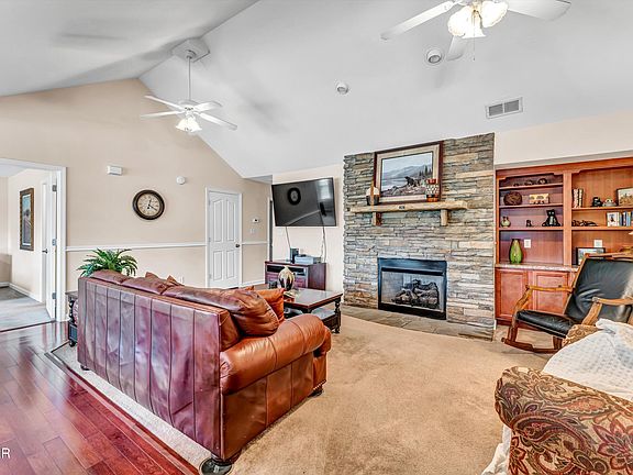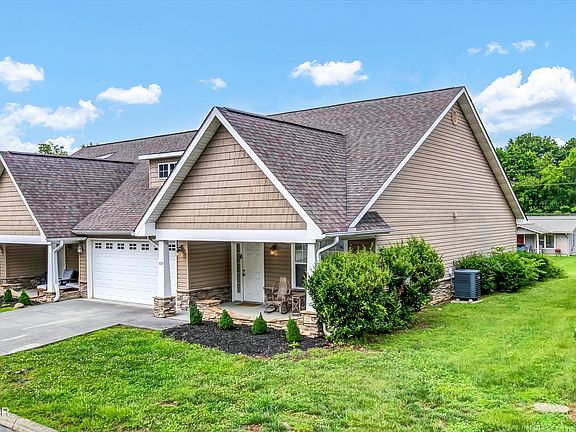 Location! Location! Location! All on one level 2BR/2BA condo with attached garage and walking distance to the Parkway in Pigeon Forge. Ideal for STR, permanent residence or a vacation home. Open floor plan is perfect for gatherings and entertaining. Living room features beautiful stack stone gas fireplace, built-in bookcase, gleaming wood flooring and cathedral ceilings. Covered front porch and back patio is perfect for outdoor enjoyment. Condos in this community can gross 50K-60K a year depending on management company and unit quality. Very low maintenance, as HOA covers the exterior (including roof and siding repair and maint), landscaping, pool, structure insurance etc