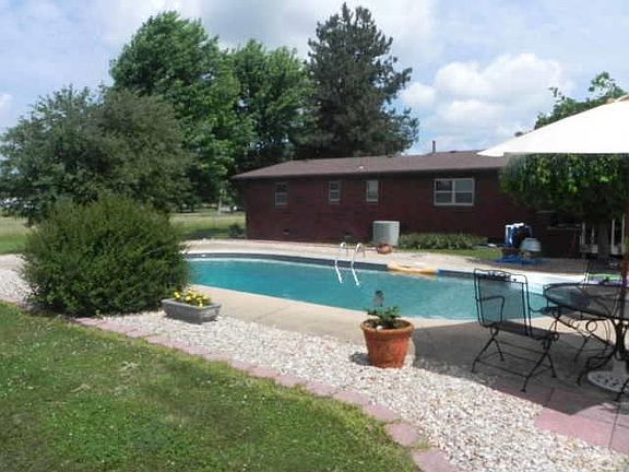 Country living so close to town! 20 acres of fenced land and pond. Could be subdivided. The all-brick ranch has three bedrooms, two baths, two living areas,custom cabinets, hard wood floor under the carpet and a two car garage. Central heat and air. Covered porch off the back of the house leads to an in-ground pool with almost new liner and a detached pool house with a separate bathroom and shower. Pool house/horse barn includes an office, storage, and stables.