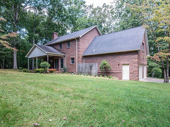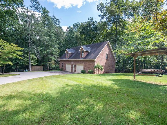 Beautiful brick home on 5.14 acres in a park like setting. Sit on the back porch and enjoy all the privacy. Finished detached garage with 1479 sqft 2 upstairs rooms are heated and cooled. Two garage doors down, separated by a wide stairwell. 20x13 shed. 3 bedroom home plus an office that could be a fourth bedroom, adjacent to a full bath. A front staircase leads you to 3 bedrooms. The rear staircase takes you to a huge bonus room. Large den downstairs with hardwood floors and gas fireplace. Refrigerator and washer and dryer stay.