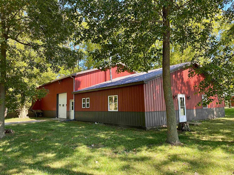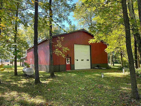 Beautiful wooded 15.34 acres located just minutes from town! Come out to the country and enjoy the quietness of nature. Post building home built in 2007 with metal roof and siding has 1280 finished sq ft. and is tucked back a gravel lane. Well insulated living space heated with GFA furnace: 3 bedrooms and 2 full baths. Kitchen includes gas stove, SS refrigerator, washer/dryer and water softener. Attached pole barn/garage is 40'x56' with upper storage loft, 2 garage doors and small cellar/storm shelter. Plenty of land space and room to grow. Established grapevine, garden space and peach and apple fruit trees. High speed fiber connect internet available with RTC.
