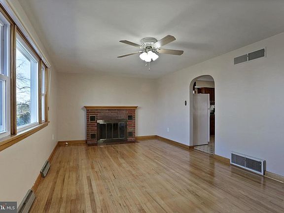 Well maintained brick ranch home features a large living room with wood burning fireplace, updated kitchen with Kraftmaid cabinets, all appliances and breakfast bar, separate dining area, remodeled main bath with jetted tub, beautiful hardwood floors throughout, 2 cedar closets, full basement with exterior access to backyard has a workshop, laundry area with washer, dryer and 2nd refrigerator and a half bath, oil heat/central air HVAC system updated in 2013, replacement windows and front entry door, Leafguard on gutters, covered back porch, private backyard with small shed, off street parking/paved driveway and a 1 Year HWA Gold home warranty is included.