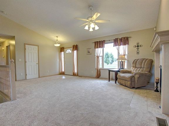 Great location within minutes of dining and shopping! This 5 bedroom, 3 bath home is tucked at the end of a quiet cul-de-sac with a relaxing view from the covered deck of the lake and lots of space (no neighbors behind you!) Large lot with sprinkler system and wood paly-set. The interior of the home offers spacious rooms, new carpet throughout, large kitchen with stainless steel appliances and main floor laundry. The view-out basement has 2 bedrooms, large open family/rec room and bonus room/office with lots of wonderful storage. This home offers so much for a growing family, come see it today.