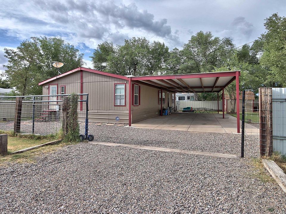 Spacious and recently remodeled mobile home in move in ready conditions!! Home was totally remodeled inside and out including new doors, tile flooring in bathrooms and laminated in kitchen; texture walls, trim, paint inside and outside. Other updates include master cooling, 60 Gallon water heater, 7 yr old roof; Master bathroom with skylight, garden tub and shower; laundry room is spacious with cabinets plus washer and dryer included!! Kitchen appliances include gas stove, microwave, refrigerator with ice maker and dishwasher. The back yard has big carport, storage sheds, dog run area, some grass and trees as well as a gate entrance. Home is close to freeway, parks, rail runner and restaurants. A must see!!