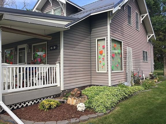 This updated two-story home on two lots has 3 bedrooms, 1-1/2 baths, 2 walk-in closets, a detached double-car insulated garage with additional storage. It has a covered front deck and a patio and smaller deck off the back door. This home has been completely updated in the last 10 years with all new flooring, sheet-rocked walls, new fixtures, and metal roof. It has a propane furnace and lots of storage in the basement, and baseboard heat in the front entryway, along with central air conditioning. We are half a block from the school and courthouse and close to downtown. The yard is huge and a great place for kids to play.