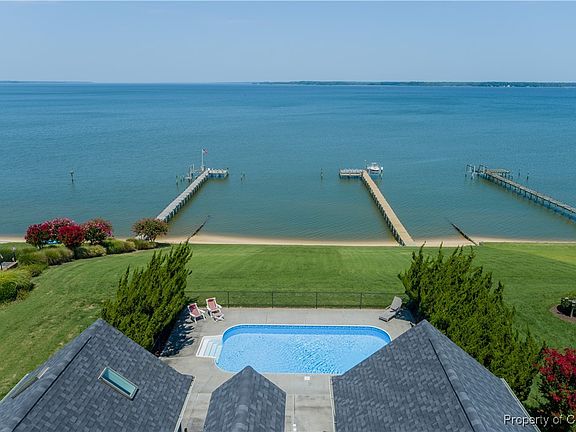 Rappahannock River--Locust Hill area--Custom built cape style home with outstanding views of the River, Four bedrooms, four bathrooms, one half bathroom, large living room kitchen combination, 20' x 21' bonus room above the garage, screened porch(17' x 13') with 19' x 13' composite deck leading to inground swimming pool, hardwood flooring in most of house, paved circular driveway, well landscaped, sand beach, pier with boat lift, 10 mins to Town of Urbanna, Established subdivision with many fine homes.