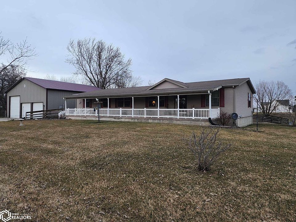 Beautiful ranch-style home located on a partially wooded 1.85-acre lot. Upon entering the house, you will notice the covered front porch that spans the length of the house. The large living and dining rooms are perfect for hosting guests or for family gatherings.The master suite is a standout feature of the house, boasting a master bath with a walk-in tub and a step-in shower. The main floor laundry is conveniently located off the master bath. You will also find a wood-burning fireplace just off the kitchen in the large living room. The kitchen leads to the multilevel deck. The deck includes an enclosed 16x18 porch and a lower level of 25x22, perfect for enjoying the outdoors. The walkout basement offers plenty of space for entertaining, with a family room, bonus room, storage room, and a third bathroom. Additionally, the basement opens up to a poured concrete patio and the fenced in backyard. The property also features a 40x45 garage with 2 vehicle stalls and 1 RV stall. The rear of the garage has an overhead door for easy mowing access to the fenced-in yard, which encompasses about 3/4 acre of the property. The east, west, and south fence lines are gated, providing additional access. If you have any questions or would like to schedule a viewing of the property contact your Realtor!