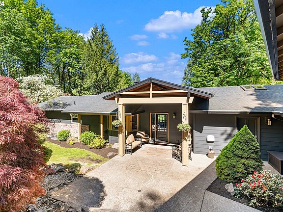 Reimagined NW showpiece. City living perfected on over half acre lot nestled in the trees of the West Hills yet minutes to downtown/Nike/Intel. Thoughtfully renovated with impressive attention to detail. The ultimate in privacy and serenity. Territorial city & mountain views + rare LEVEL, spacious walk out yard with removable sport court for your active NW lifestyle. Open concept floorplan with indoor/outdoor integration seamlessly connects to two expansive decks for entertaining, enjoying wildlife and watching spectacular sunrises; perfect to end a long day relaxing in the large capacity hot tub under the stars. Gracious entry flows into generous sized living & dining with full wall of windows to take advantage of the views & greenery. Handsome wood burning fireplace & extensive engineered hardwood floors. Broad shouldered vaulted cooks kitchen to die for featured in Ore Remodeling Mag! Huge eating island, generous prep surfaces, high end applcs, prep sink, dual dishwashers & walk in pantry. Fully remodeled main floor primary suite opening to deck does not disappoint. Abundant windows & skylights drench both levels in natural light. Spacious lower level offers flex spaces including family room with fireplace, game area, two bedrooms, full updated bath, music studio & laundry. NEWLY finished 400+ sq ft multi purpose bonus room is ideal for guests/home office/crafting. Main floor mud room even includes a dog shower for Fido! Extensive updating in 2022-2023 includes: completely remodeled main floor bathrooms; new flooring throughout both levels; 2,000+ sq ft of new TimberTech decking & railing; new furnace, mini split & central A/C; newer windows & 8 ft slider doors; complete interior & exterior re-paint! Three heating systems. Attached two car garage. Near Washington Park; located less than 100 yards from the trail system for Pittock Mansion, Hoyt Arboretum & the Audubon society for hikers & nature lovers. Impeccable. Great schools. Low taxes!