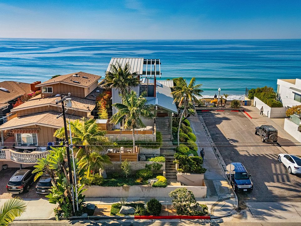 Welcome to this incredible ocean front home just steps away from the beach. Enjoy the ocean breeze, spectacular sunsets, and oversized outdoor space adorned with mature landscaping. You will love the waterfall jacuzzi, sauna, private yard and endless ocean views. There is a bonus glassed rooftop ocean view room that would be perfect as a home office, gym or yoga studio! Central a/c, 2 car attached garage, modern kitchen.