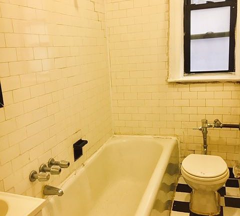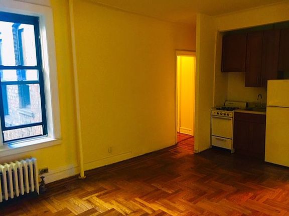 This apartment is legally a 2 roomed Studio, but in reality it's a decent sized one bedroom. The pullman kitchen is along one of the living room wall's. Past tenants had a butcher block style table in front of kitchen area, Owner is going to add another base cabinet with countertop, that can also be used for bar stool style eating. The bedroom is large & has fantastic closet space, windowed Bathroom original yet bright & clean. Building has elevator, laundry, bike storage live in super. Close to subway & shops. This unit is rent stabilized.