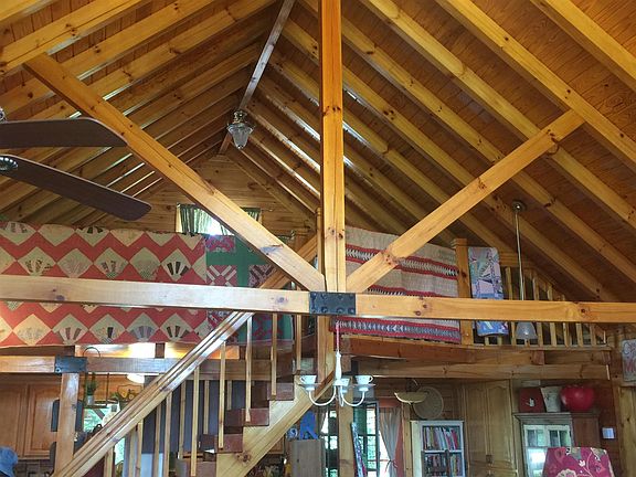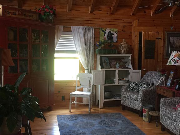 Serene property with mountain views, pond, acreage, paved drive and a beautiful log home.