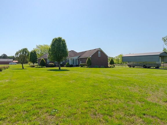 Immaculate Brick home on 5 acres Split bedroom floor plan Sun room Formal Living Room with fireplace Formal Dining Room three car attached garage 10 X 12 storage bldg 18 X 40 RV Shed with electricity 19 X 18 storage shed bonus room over garage with extra storage space