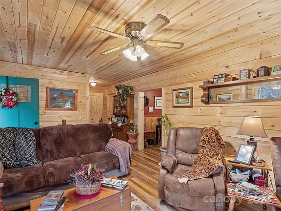 Conveniently located between Spruce Pine & Burnsville this 2BR/1BA cabin is nestled in a cul-de-sac at the end of a paved state maintained road. This cute as a button, cozy cabin sits on a level lot offering enough outdoor space for entertaining, gardening or green area with minimal maintenance. Enjoy mountain living at its finest from the front porch as you relax to the soothing sounds of your very own creek. Beautiful tongue & groove pine ceilings, laminate vinyl flooring, updated bathroom, mini-split for heating/cooling. Great starter home, year round living, weekend mountain getaway or investment property. 2 outbuildings for extra storage, 14x38 RV shed to be completed prior to closing. Home did not have any damage from Helene. Only 5 minutes to Spruce Pine, 10 minutes to Burnsville, 15 minutes to Blue Ridge Parkway, 45 minutes to Asheville-
