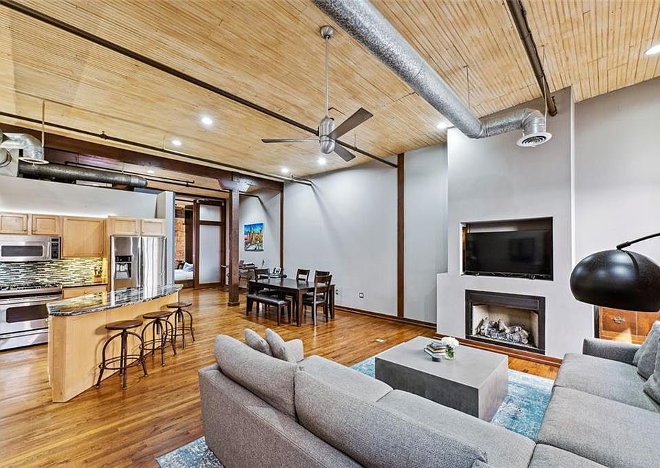 Experience the epitome of urban living in this stunning industrial loft in Castleberry Hill Revel in the modern amenities of the beautifully renovated Chef's kitchen with stainless steel appliances and a spacious island, alongside the historic charm of high ceilings, hardwood floors, exposed brick, and ductwork. This inviting loft features a tucked-away office space, beautiful bedroom suite & en-suite, and spacious living room w/ fireplace. Enjoy the convenience of one secured covered parking space and on-site dog park. With proximity to attractions like the Mercedes Benz Stadium and State Farm Arena, as well as dining options and the Summerhill neighborhood's vibrant scene, Castleberry Hill truly stands out as the premier place to live.