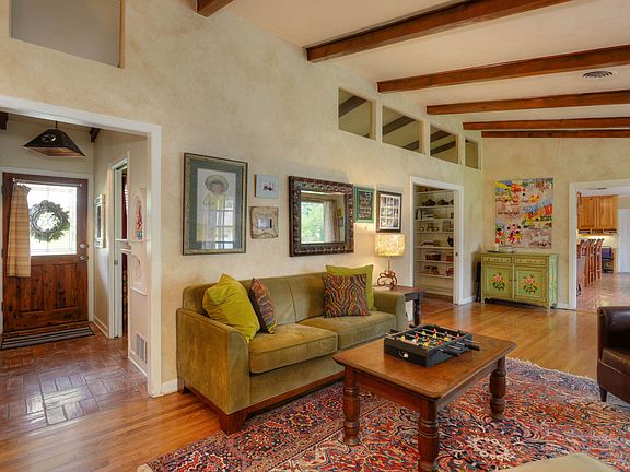 Spacious home situated on over 1/2 an acre. Newly remodeled kitchen and living room with open floor plan, skylights, new windows and roof, and all new kitchen appliances. Enter the master suite though sitting room with pool access. Continuous flow between family room, dining, kitchen with the ability to extend festivities to the back deck/patio. Circular drive plus driveway through gated back yard leads to 2-car garage with attached quarters. Great details include inside stonework and wood flooring, 2 gas fireplaces, pool surrounded by flagstone patio, high ceiling, french doors, gas cooking, large utility room for added storage/workspace.