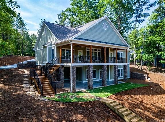 New construction waterfront home on Lake Tillery in Swift Island Plantation. Located on a quiet cove with great waterfrontage in a gated community. Hardwoods throughout on the main level with granite counters and custom cabinetry. Beautiful views from the master, family room and den which all lead out to the massive lakeside covered deck. The lower level has a large lakeside bedroom with walk-in closets, a great room and a flex room with a closet that can be used for a sleeping area / office or exercise room. Tons of storage as well with over 550 s/f. Beautiful landscaping with minimal grass to mow ( you don't want to mow grass while you are here ! ) New boathouse and sundeck with bulkhead. The walk out patio and main level deck are perfect spots for entertaining, grilling and making memories with your family and friends. Come see what Lake Life is about on Lake Tillery at this beautiful home.....it is a lifestyle you will love !!!!