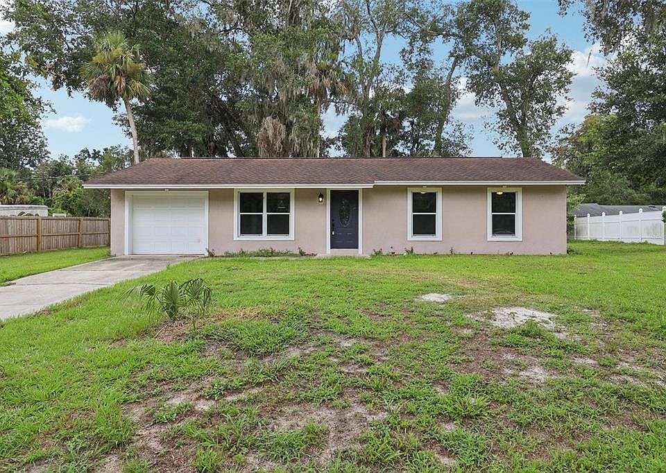 One or more photo(s) has been virtually staged. Price improvement.....Totally Renovated Block Stucco Home in the Heart of DeLeon Springs! This beautifully updated 3-bedroom, 1.5-bath home sits on a spacious 110x100 lot and is completely move-in ready. The gourmet kitchen is a showstopper, featuring a stunning all new stainless steel appliances to include a ceramic tile cooktop, built in oven and microwave, and hood, quartz countertop, gold accent fixtures, subway tile backsplash with gold accent grout, soft-close cabinetry with gold handles, breakfast bar and elegant crown molding throughout. You'll love the bright and open layout with freshly painted interior and exterior, knockdown ceilings, newer windows installed in 2023, brand-new ceiling fans, newer carpet in the bedrooms, gorgeous 15x30 ceramic tile panels in the kitchen, living/dining room and baths, updated doors and hardware. The bathrooms have been tastefully remodeled with modern finishes and gold accents. The roof was replaced in 2017, the HVAC system 2012 and maintained and the hot water heater 2024. The electrical panel has been updated, the well pump is also new in 2024, and the septic system was pumped in 2023. A one-car garage provides secure parking and additional storage. Located just 5 minutes from beautiful DeLeon Springs State Park, 20 minutes to the beaches, and 30 minutes to Orlando, this turnkey property is perfect for first-time homebuyers or those looking to downsize. This home is turn-key!!! Call today before this Home says "SOLD"