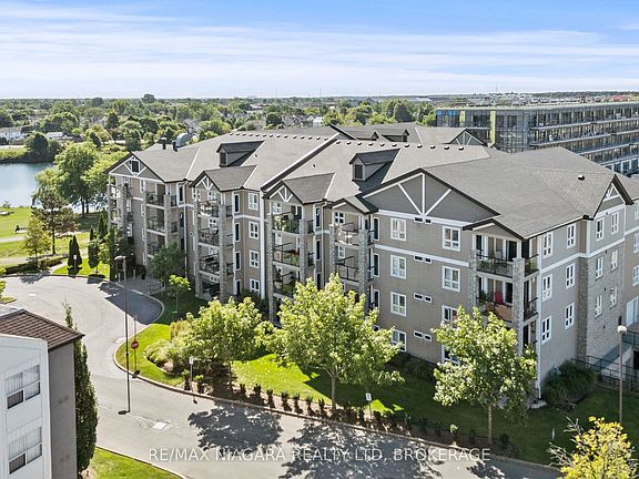 Seaway Pointe Condo in Welland on the Canal! Fully updated two bedroom corner unit in the desirable Seaway Pointe waterfront condo building right on the old Welland Canal with walking paths and a dock to use for non-motorized water sports! Walk downtown, to the market, restaurants or music events held along the Canal. Nothing to do but move in and enjoy! All doors, trim, flooring has been replaced in this unit along with a completely renovated full kitchen with stone counters, classic farm sink, soft close cupboards and drawers, kitchen pantry, undercounter lighting, high end appliances and large 12" x 24" tile floors that run from the kitchen through the foyer and into the 4 piece bathroom, which has a jetted tub with lights and music to relax in as well as an upgraded bidet, stone counter and vanity with tile floors. Modern lights with fans throughout the unit have been upgraded as well. The principle bedroom is very spacious with large window and closet with a second bedroom with large close and window as well. The kitchen, eating area and living area are all open and full of light with all the windows and access to the covered balcony to enjoy all year long! This unit has one underground parking spot in a prime location near the elevator. This condo has a large party room with full kitchen and lots of activities organized every month. This is a prime location with close proximity to every thing you need with the Hospital nearby and easy highway access. This is easy living at it's finest!