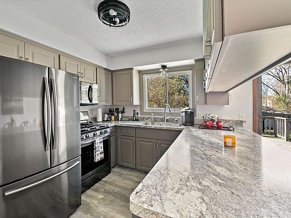 Welcome to this affordable and hard-to-find split foyer home in a great neighborhood! The entire upper level has been completely redone including kitchen cabinets with roll-outs, all new appliances, sink, countertops, laminate flooring, paint and carpet. The main bathroom has also been redone including new floor, vanity and countertops., as well as tub shower & toilet. The natural gas furnace and central air was new in 2022. Spacious and treed lot with 8 x 12 backyard storage shed. You will love the oversized 28 x 28 attached garage! Award-winning Maple Lake school district.