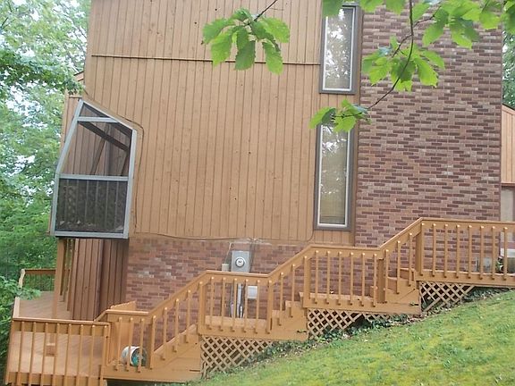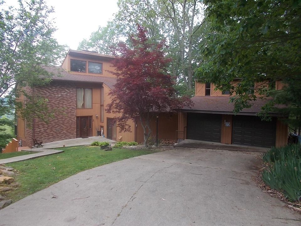 This 2 story brick & wood siding home features living room w/ fireplace, dining room, kitchen, master bedroom & bath on the main level and 2 bedrooms & 2 baths upstairs. The basement features family room w/ fireplace, kitchen, bedroom & bath. Other amenities include upper & lower decks, 2-car detached garage, in-ground pool, heat pump, gas logs, kitchen appliances and extra lot.