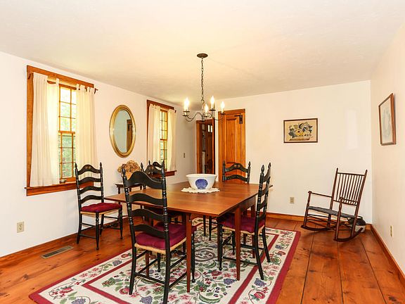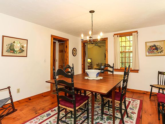 Lynxholm's Bow Cape by Mystic Lake! The bowed roof is a direct result of Cape Cod's intimacy with the sea. A shipwright's fancy, where the techniques of making ship's hulls were applied to the framing of the roof. Wide pine floors along with hand-made, four panel pine doors create a warm feel through the home. The hearth brick fireplace is the focal point of the kitchen. The sunroom and patio areas offer a sunny spot to read and soak in the sun. The family room features a gas fireplace surrounded by brick, built-in shelves and custom wood sliders along each side of the room. Step out the slider on to the deck and find yourself nestled on a wooded level acre of land. Relax amongst the nature, mature trees and lush rhododendrons. Enjoy fishing, kayaking and boating on the lake!