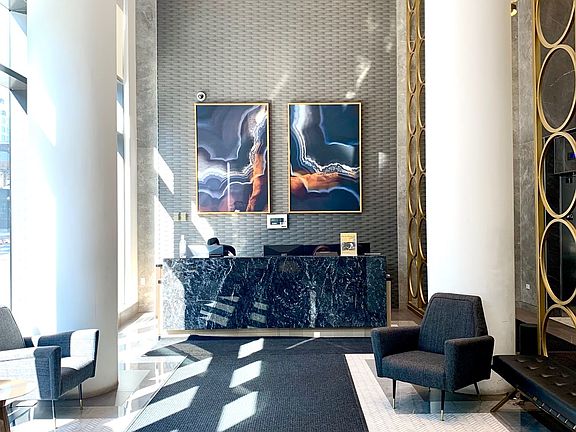 Fully professional furnished suiteCustom-installed glass wallBright private second bedroomFloor-to-ceiling windowsWide-plank hardwood floorsDesigner furnishingsGourmet kitchen